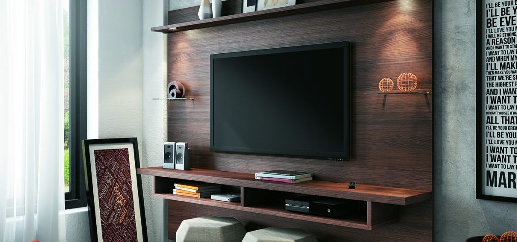 Pode-se também aplicar esse material em painéis para televisão. Muito utilizados na decoração de ambientes pela praticidade e versatilidade. Além disso da questão estética. Porque também serve para esconder toda a fiação da TV e equipamentos, que criam um aspecto de desorganização no espaço.